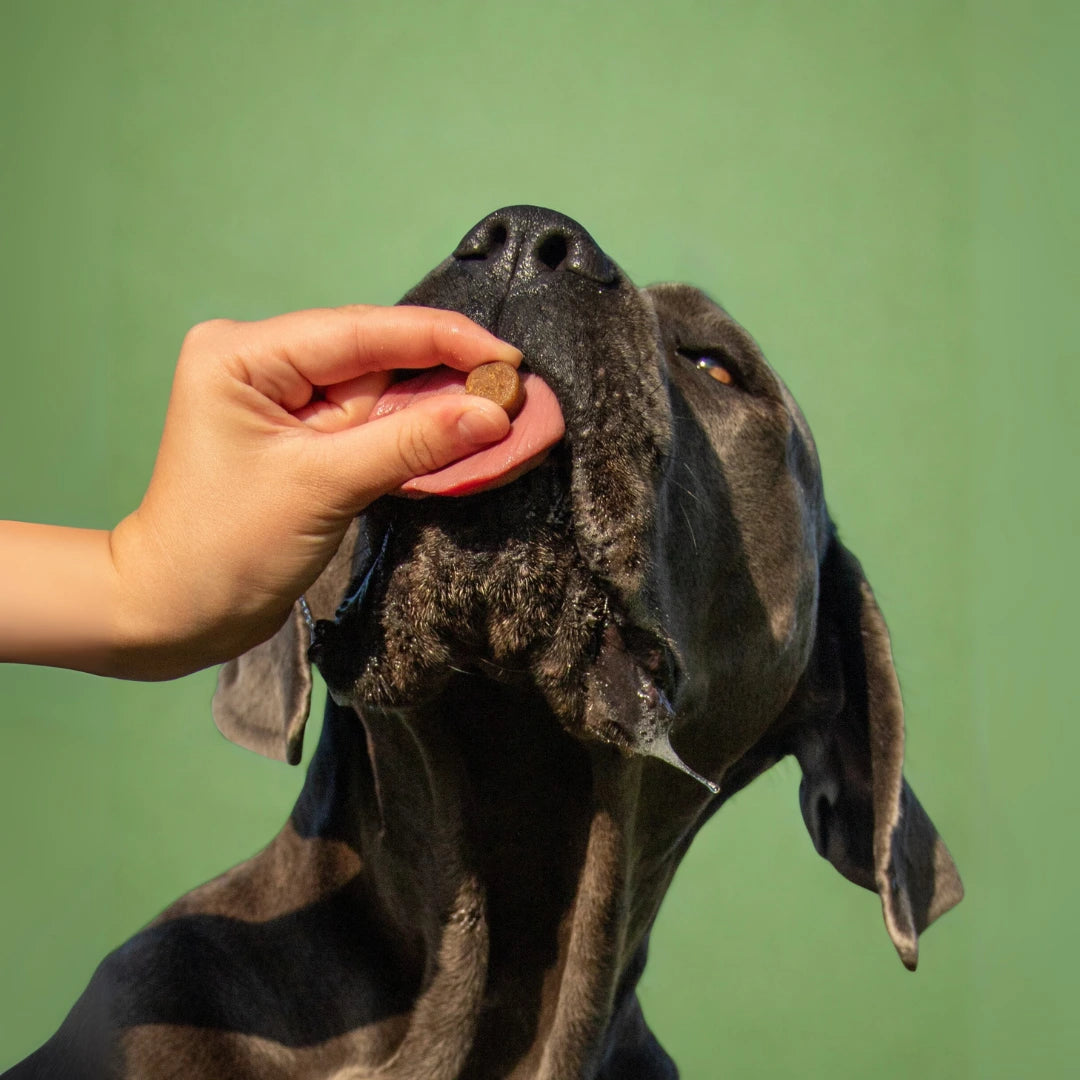 Our Multivitamin is made with the highest quality human-grade chicken liver, a flavour that dogs absolutely love. In the case of a chicken allergy, we recommend our Beef flavour!